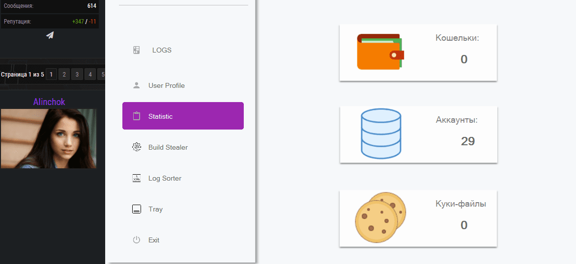 - Статистика всех биткоин и куки файлов+ всех аков в целом