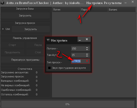 Когда всё приготовили (прокси и база) запускаем программу "Avito.ru.exe"