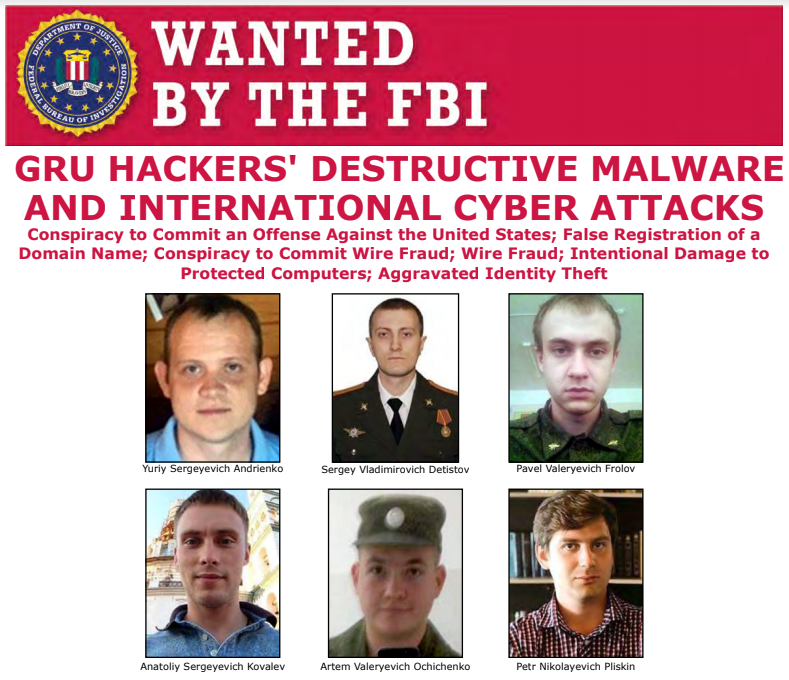 Американские власти обвинили шесть офицеров ГРУ в атаках NotPetya, KillDisk и Olympic Destroyer