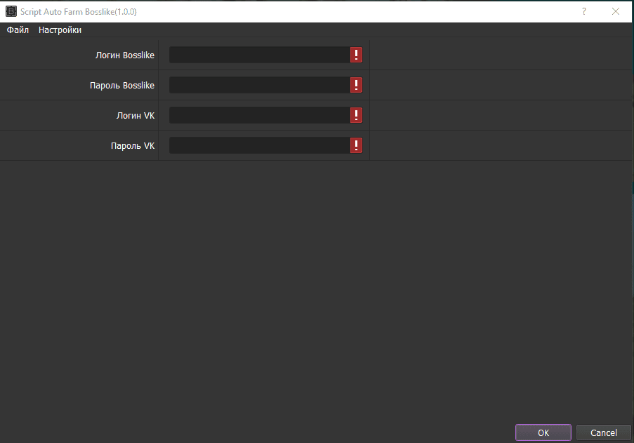 • Если вы подключили подтверждение входа в аккаунт bosslike (Код из почты и т. д.), скрипт работать не будет, ибо я не прорабатывал это !