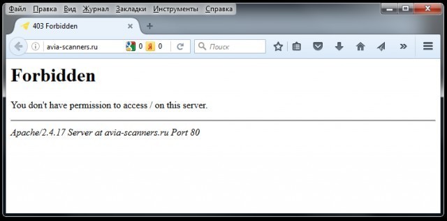 Кто-то из читателей успел поиграть с ним. Но сейчас он не доступен. На главной странице «Forbidden/ You don't have permission to access / on this server. Apache/2.4.17 Server at avia-scanners.ru Port 80»