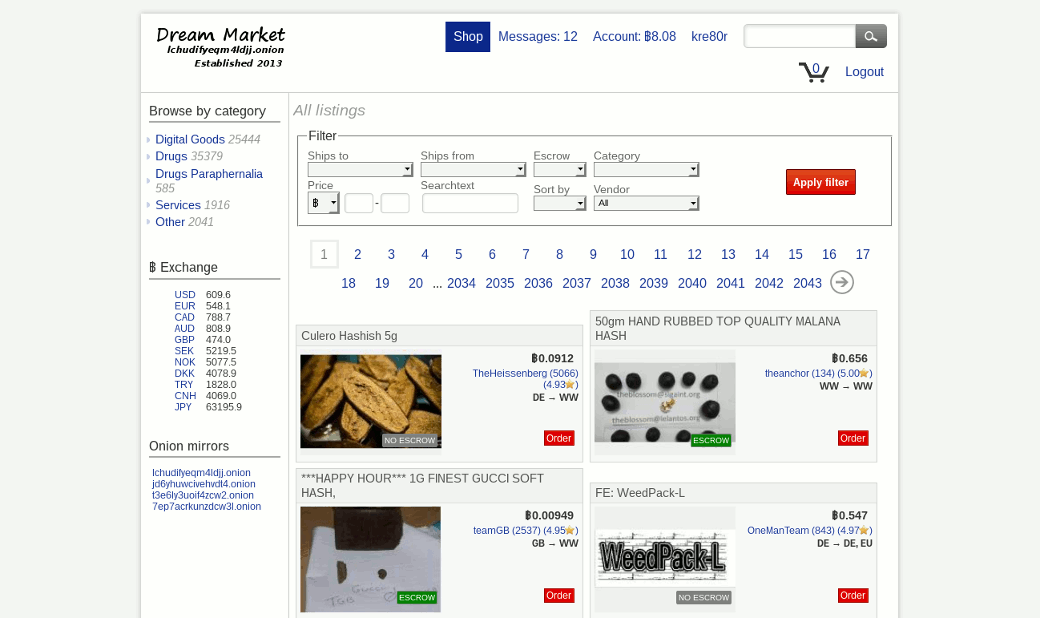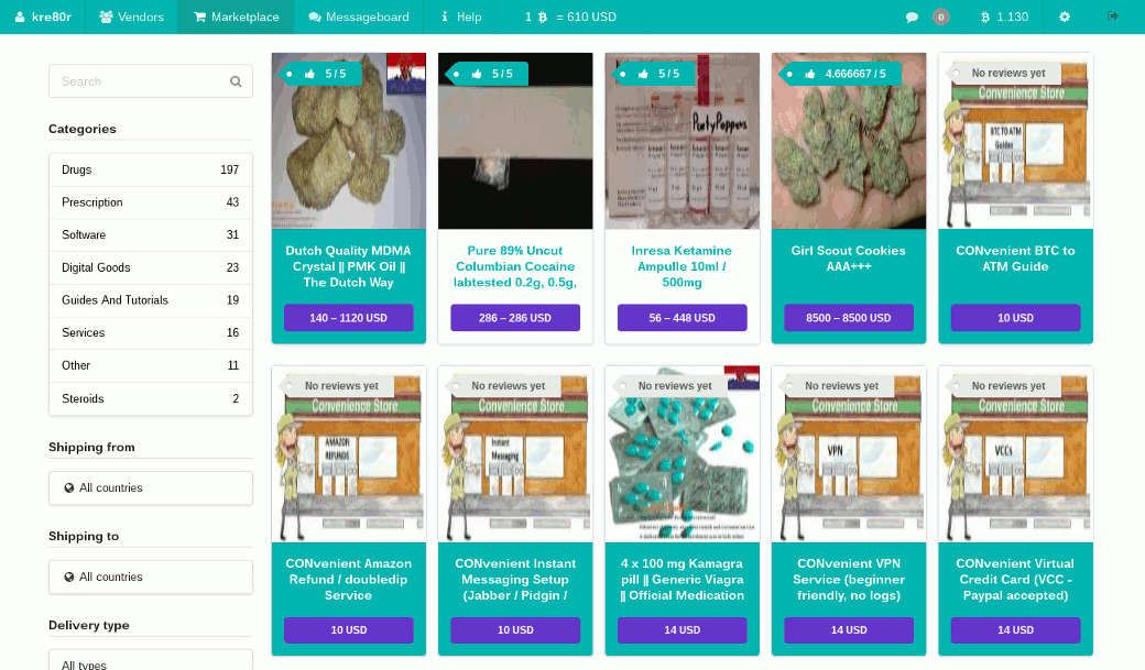 Маркет, близкий по функциональности, качеству и наполнению к AlphaBay. Специализируется на наркотиках и цифровых продуктах. Позиций на порядок меньше, но в целом спектр товаров тот же. Маркет ничем не примечателен, кроме разве что интригующего вопроса: зачем им кто-то пользуется, если есть маркеты лучше?