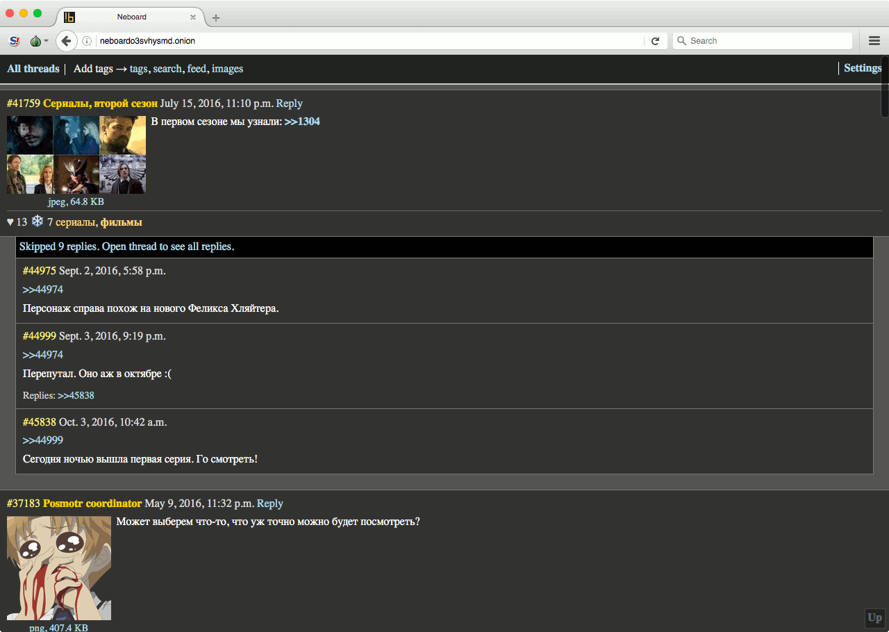 Ходить на хидденсервисы, просто чтобы потрепаться, — это, определенно, развлечение на любителя. В обычном вебе достаточно ресурсов, на которых можно анонимно зарегистрироваться (или не регистрироваться вовсе) и болтать о чем душе угодно. На «луковых» сайтах говорят в основном о делах. Каких — ты уже, наверное, понял.