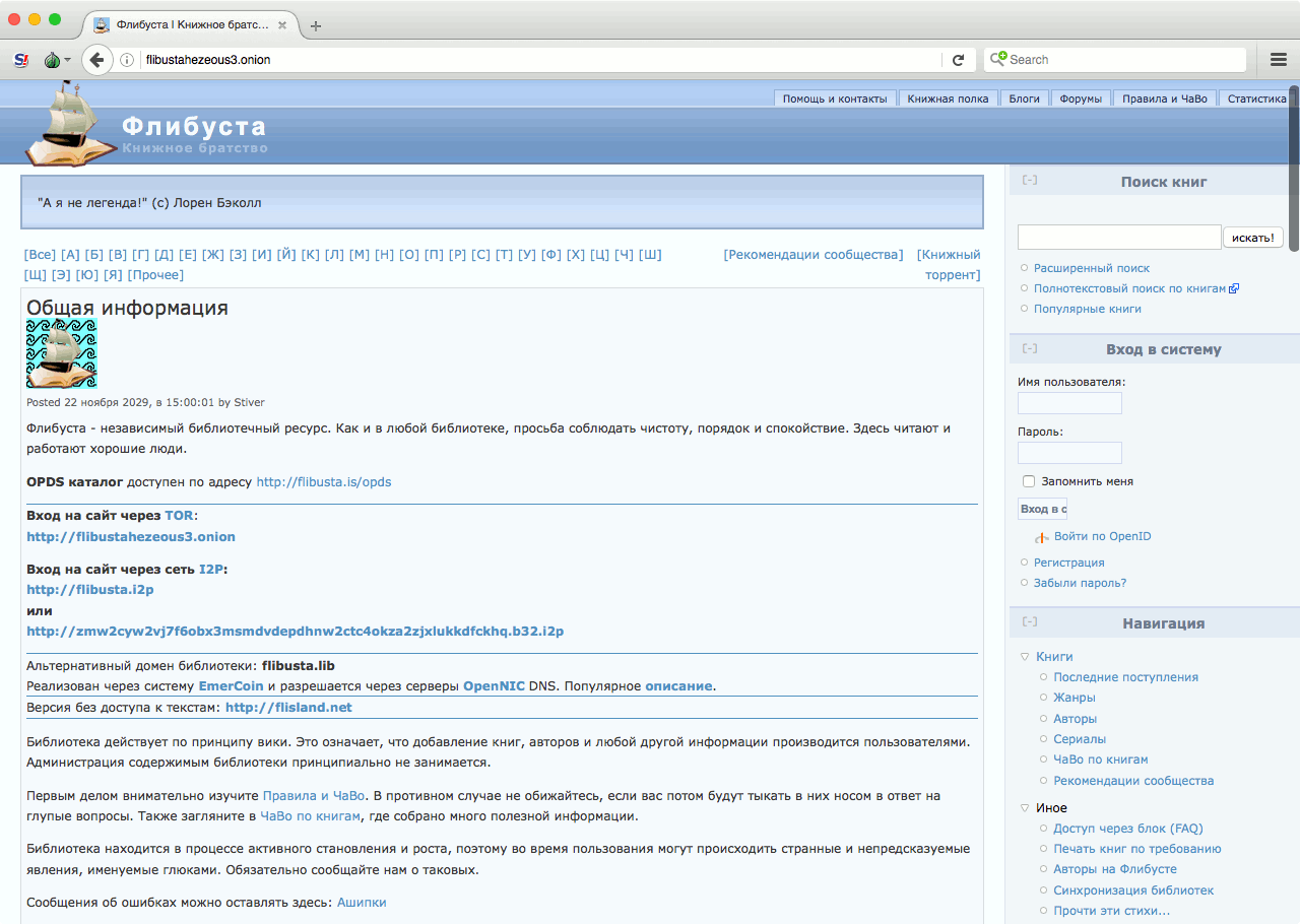 Для книголюбов в дарквебе тоже есть все необходимое — в первую очередь это «Флибуста» и отличный поисковик по «библиотеке Траума» под названием «Словесный богатырь». Английские и немецкие книги можно поискать в местечке с пафосным названием Imperial Library of Trantor, но с новыми поступлениями там туговато. Еще есть Calibre, правда база из 1600 книг — это как-то не очень серьезно. В развалах компьютерной и учебной литературы на английском можешь покопаться по этой ссылке. Ну и конечно, на место в закладках серьезно претендует зеркало пиратского агрегатора научных работ Sci-Hub.