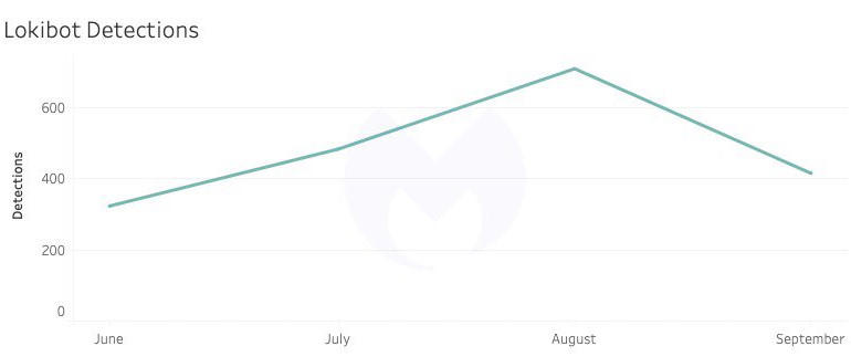 В 2019 году эксперты SpamHaus назвали LokiBot малварью с наиболее активными управляющими серверами, а в том же рейтинге за первую половину 2020 года LokiBot уверенно занимает второе место.