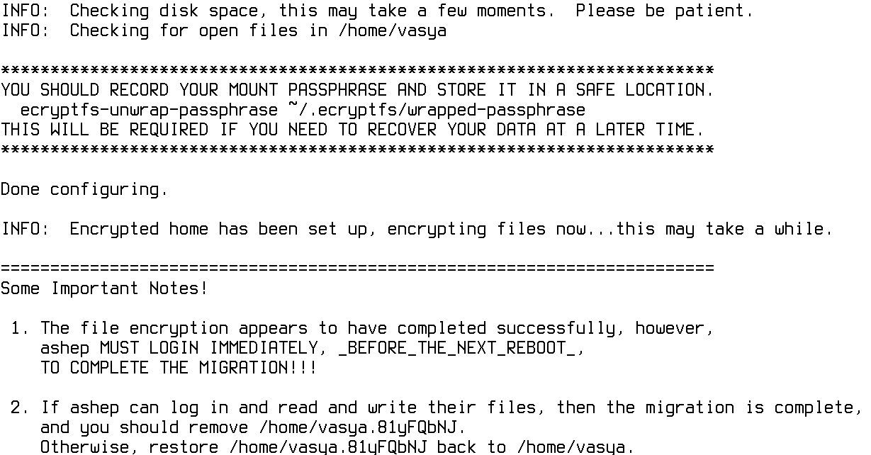 # ecryptfs-migrate-home -u vasya
