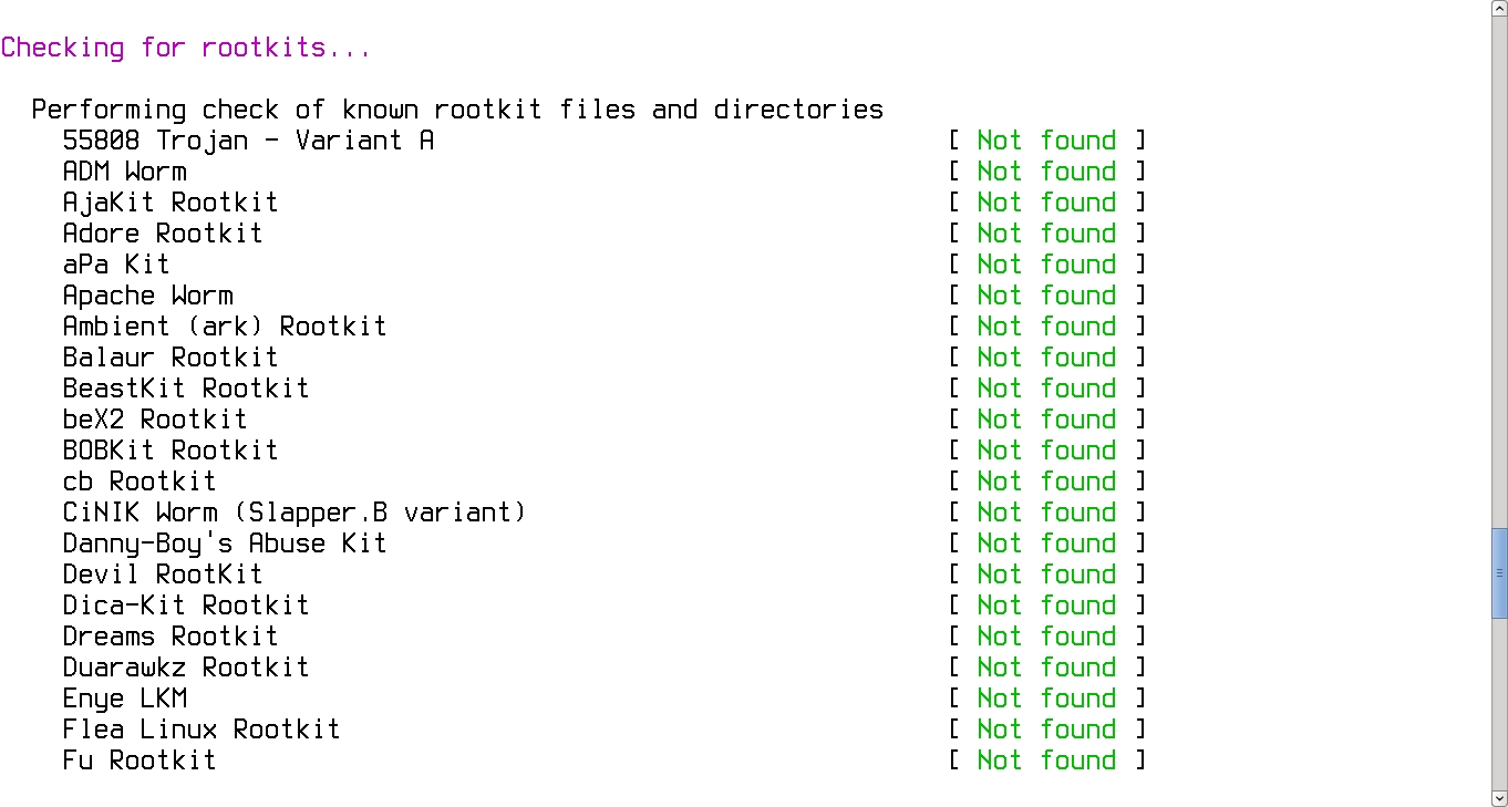 Ее, кстати, можно добавить перед командой проверки в cron-сценарий. Еще два инструмента поиска руткитов: