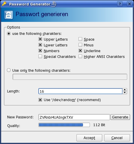 В KeePassX есть свой генератор паролей