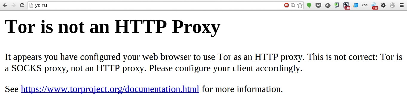 Tor говорит, что он не HTTP-прокси