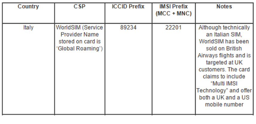 Global — IMSI 22201xxxxxxxxxx, принадлежащий итальянскому оператору TIM.