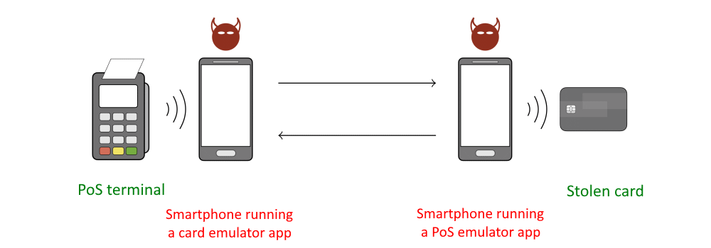 Приложение должно быть установлено на обоих смартфонах, которые будут выступать в роли эмуляторов. Так, один смартфон помещается рядом с украденной картой и будет действовать как эмулятор PoS, вынуждая карту инициировать транзакцию и поделиться ее данными, тогда как второй смартфон будет действовать как эмулятор карты и используется для передачи «подправленных» данных транзакции в реальный PoS-терминал магазина.