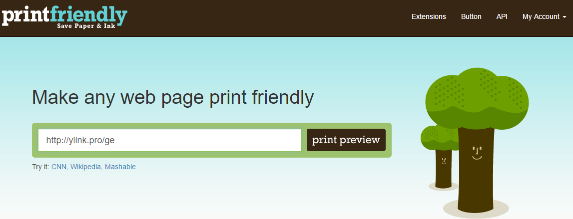 • Перейдите на сайт с виртуальным принтером Printfriendly и вставьте в сроку для отправки на печать через онлайн принтер.
