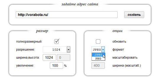 • Выберите нужный вам размер скриншота и установите опции, которые вас удовлетворяют.
