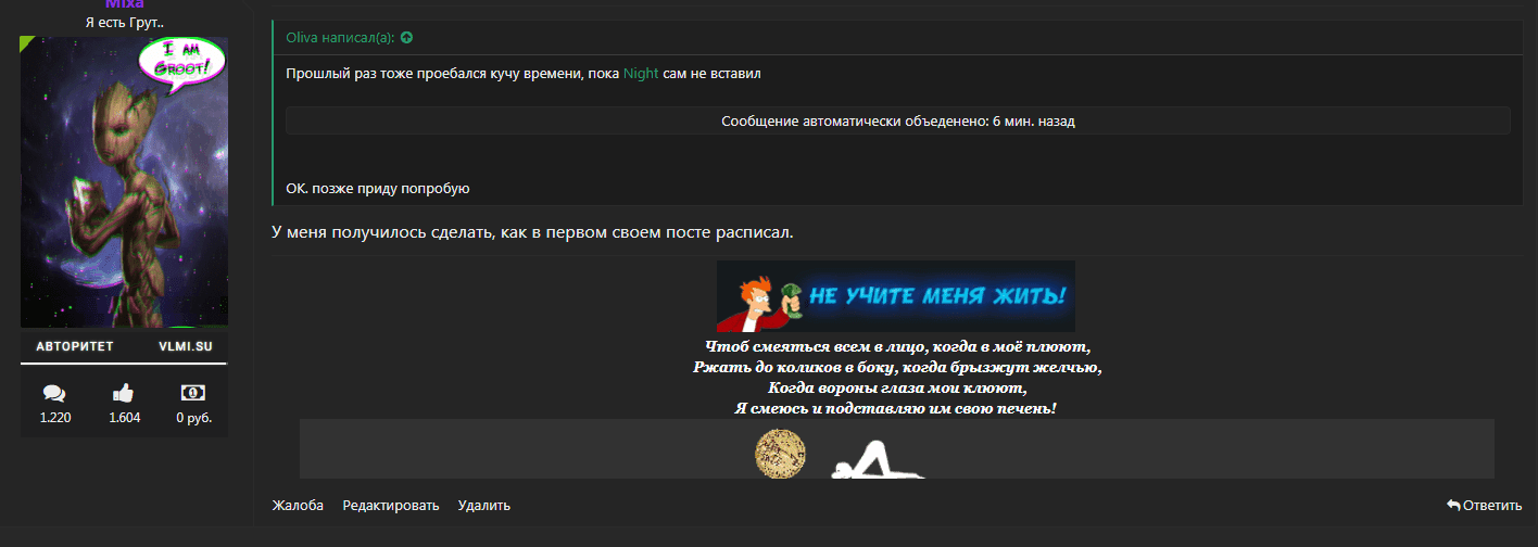 Всем привет! Почему то у меня опять гифка в подпись не хочет корректно становиться...(