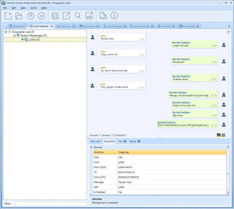 Криминалистическое ПО (на скриншоте — Belkasoft Evidence Center) умеет восстанавливать удаленные данные, такие, например, как чаты скайпа, с помощью глубокого анализа баз SQLite