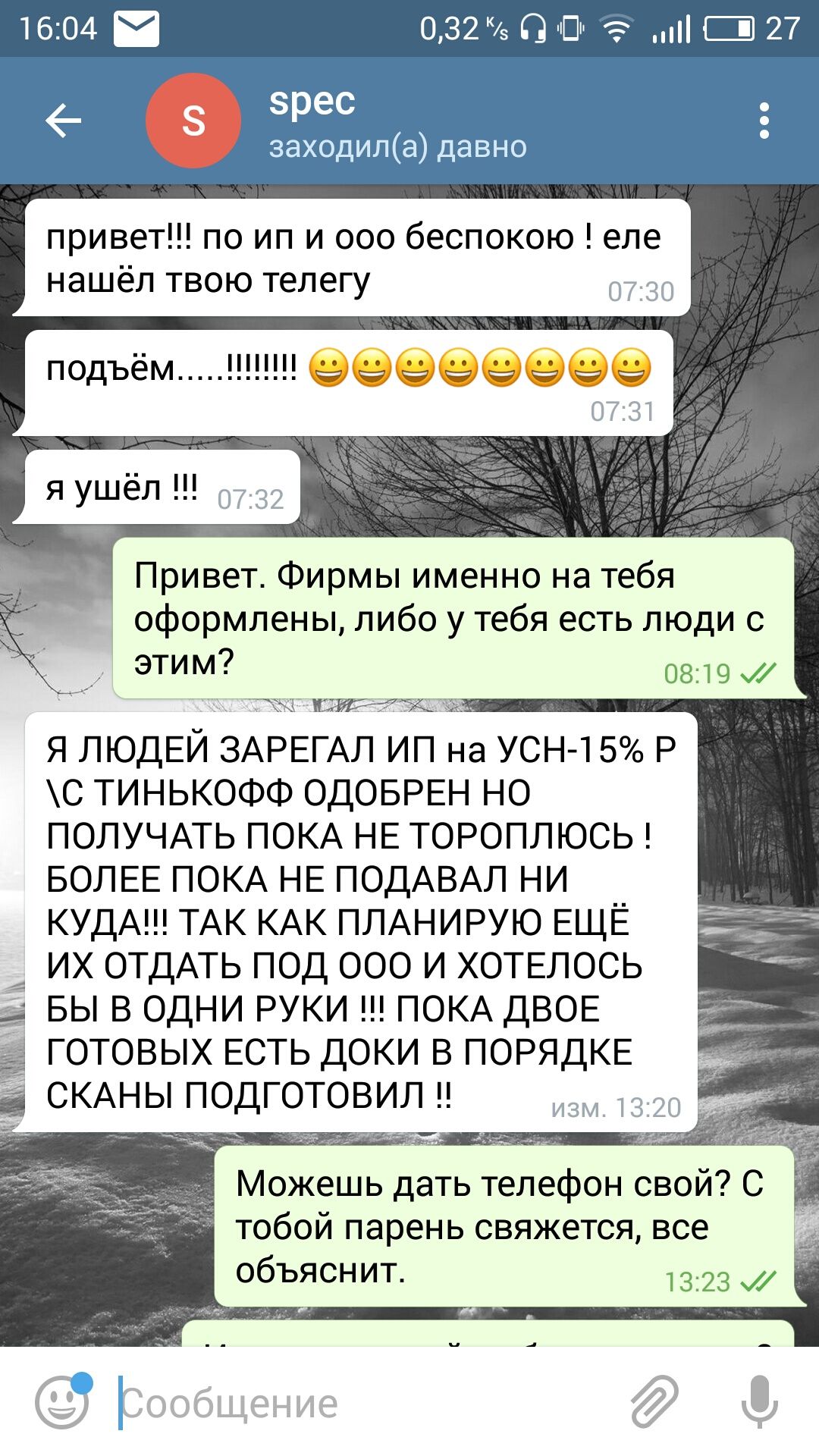 Прикрепил скрины переписки.