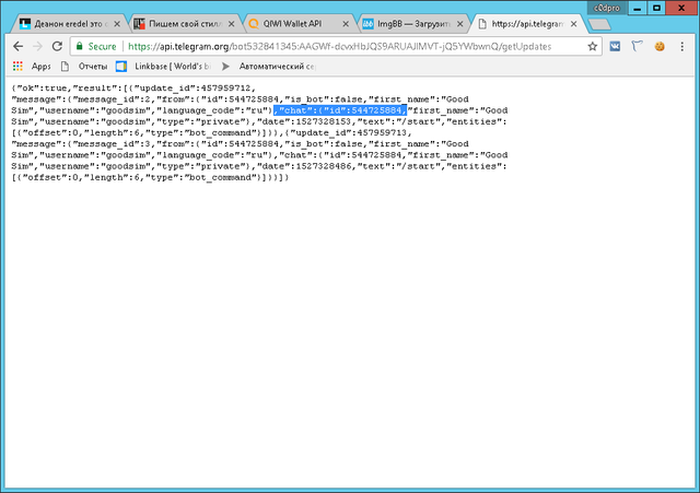 https://api.telegram.org/botВашToken/getUpdates #перейти по данной ссылке