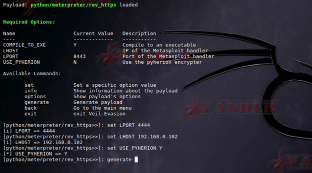 В качестве теста, я буду использовать (генератором полезных нагрузок будет Veil-Evasion) тип – python/meterpreter/rev_https.