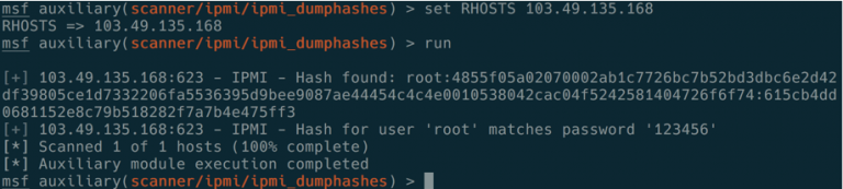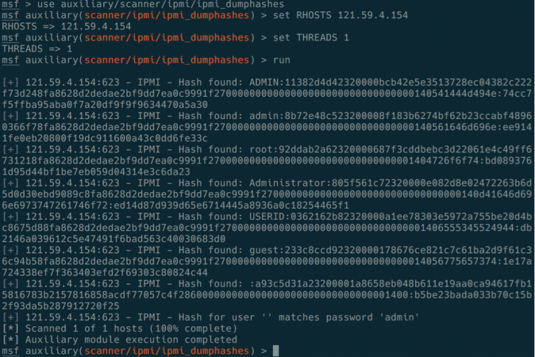 Теперь нам понадобится Metasploit Framework или Nmap, чтобы просканировать список адресов на так называемую уязвимость Cipher zero, а также попробовать сдампить хэши пользователей IPMI (для взаимодействия с интерфейсом возможно добавить несколько пользователей с разными правами).