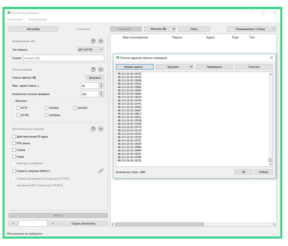RSocks Proxy Checker - ваш ассистент в работе с прокси серверами. Программа осуществляет проверку списка прокси и сортирует их по различным параметрам. С помощью фильтров и встроенных возможностей программы можно настроить прокси чекер для максимально эффективной работы как с нашим сервисом, так и для проверки любых других прокси.