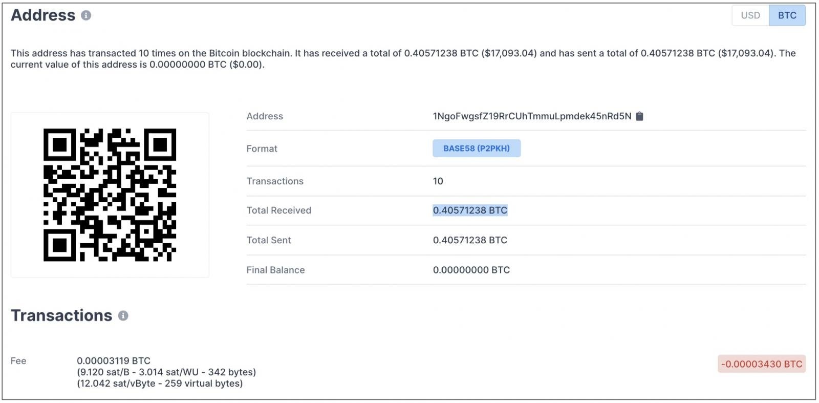 И хотя взлом был обнаружен довольно быстро, а меры приняты, к сожалению, баланс кошелька злоумышленников свидетельствует о том, что некоторые пользователи все же успели попасться на удочку мошенников. История транзакций демонстрирует несколько переводов, сделанных с разных биткоин-адресов. В итоге баланс кошелька хакеров составил 0,40571238 BTC, то есть примерно 17 000 долларов США по текущему курсу.