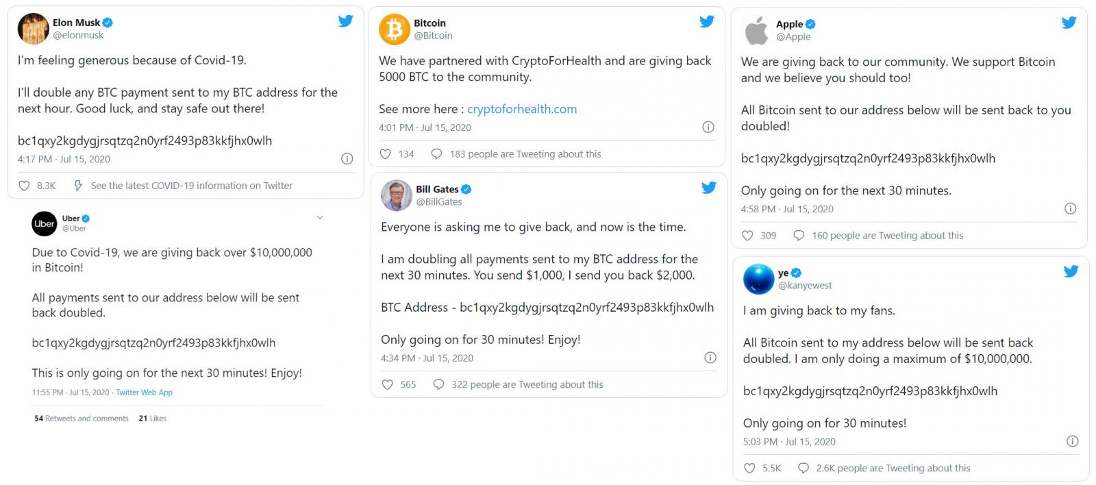 Минувшая ночь была трудной для компании Twitter: массовой компрометации подверглось множество аккаунтов публичных людей, компаний, криптовалютных бирж и так далее. Так, среди пострадавших были: Билл Гейтс, Илон Маск, Джефф Безос, Джо Байден, Барак Обама, Уоррен Баффет, Канье Уэст, Ким Кардашян, компании Apple и Uber, крупнейшие криптовалютные биржи CoinDesk, Binance и Gemini, а также многие, многие другие. Для большинства этих учетных записей была включена двухфакторная аутентификация, которая не остановила хакеров.