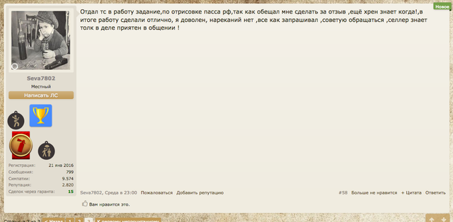 Еще один отзыв от довольного клиента с форума Darkmoney