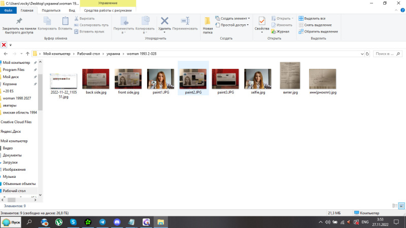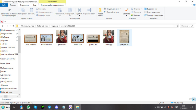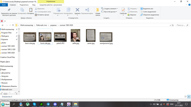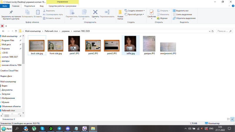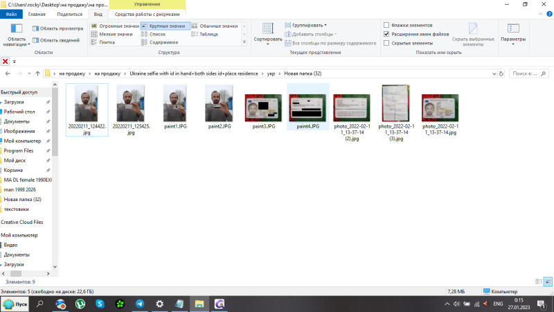 Вы видите наперёд селфи с краской(замазом) и две карты к нему(передник и задник) с краской(замазом) ,также я буду делать скриншот на весь комплект документов которые находятся в том или ином паке.