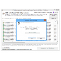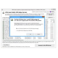 Для запуска плагина, после запуска клиента, в главном окне надо выбрать VPN Gate Public VPN Relay Servers, далее перед вами откроется новое окно со списком серверов VPN, после можете выбрать тот к которому хотите подключиться.