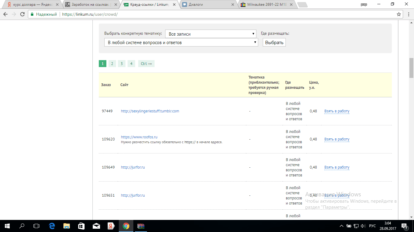 3. Заходим во вкладку “Исполнителю” и опускаемся вниз, критерии поиска выставляем так: Выбрать конкретную тематику – “Все записи” Где размещать – “В любой системе вопросов и ответов”